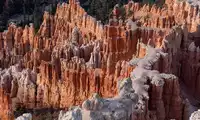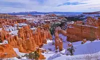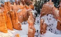 The most breathtaking scenery is Bryce Canyon National Park after a snowfall. The park's core landscape is a series of ghostly stone towers and pillars, eroded by vast expanses. Winds carrying coarse sand and gravel, and the freezing and melting of water droplets, have carved the colorful rock into bizarre shapes, creating Bryce Canyon's magnificent scenery. The sunrise at Sunset Point is brilliant and breathtakingly beautiful.