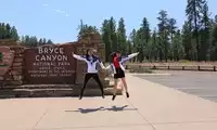 My friend asked Junye what Bryce Canyon was like. Junye described it as a red version of the Stone Forest in Yunnan, and it's the red rocks that make Bryce even more stunning. Bryce Canyon National Park, like other national parks, costs $30 per car. Getting to the ticket office from Kanab takes about an hour and a half. The tour is relatively simple: after purchasing your ticket, drive south for half an hour to the terminus, Rainbow Point. The observation decks are all on the east side, so you can drive straight to the end and then stop at each viewpoint on the way back. Of course, if you want to explore deeper, you can hike to the canyon floor. But I imagine most people, like us, are short on time.
