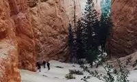 There are many roads to drive north from the town of Kanab. They are uphill roads with many bends, but the roads are wide and not difficult to drive. There is no snow in other national parks. Death Valley is even hotter. It was snowing when I got here, and the snow was falling. The roads in the park are covered with snow, and some places are very slippery, so be careful. All the trails going down are covered with snow, very slippery. The brave young people still went down half-sliding and half-walking. After all, the perspective of looking up when going down is different from the perspective I had from the observation deck. The different landscapes in winter and summer, there are fewer people coming here in winter than in summer. But it is still worth coming.