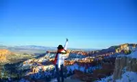 The North Rim of the Grand Canyon is closed in winter, so we skipped it because we were too lazy to go. Arriving at Bryce Canyon, we learned the park shuttles don't run in the winter either, so we had to drive to each attraction. Each parking lot is a short walk uphill to a viewing point. If you're only choosing one spot, Inspiration Point is recommended. For a more expansive hike, you can wait for sunset to arrive at Sunset Point, then walk down a bit and then back again. The hike between Sunset Point and Sunrise Point takes about an hour one way, so if you have a shuttle, definitely take the hike; otherwise, you'd hate to have to walk back to get your car.