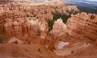 We recommend starting this hike at Sunset Point, as we did. This loop hike involves descending a steep, zigzagging path to the canyon floor, then traversing the bottom to Sunrise Point. From there, you'll walk along the canyon rim back to the Sunset Point parking lot. Along the way, you'll see hikers appear dwarfed by the sheer red rock formations.