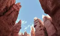 Bryce Canyon boasts a prime viewing platform, offering a bird's-eye view of the entire canyon's splendor. However, the best vantage point for viewing the entire canyon lies deep within, gazing up at the stone pillars. The canyon walls, eroded by wind and rain over millions of years, have become vibrantly colored and vibrant. Thousands of these pillars, some like sharp swords piercing the sky, others like graceful young girls, are said to represent evildoers transformed into stone pillars and trapped here. Only by descending into the canyon can you truly experience the awe-inspiring experience.
