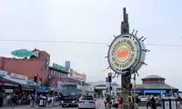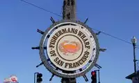 The sign of Fisherman’s Wharf is a circular sign with a big crab painted on it. If you find this, you have arrived at Fisherman’s Wharf.