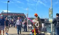 Fisherman's Wharf is bustling as usual in the early morning. Street artists have already set up their instruments, including saxophone players, drummers, guitarists, organists, and singers – a vibrant mix of different types. Not to mention Pier 39, which boasts over a hundred diverse boutiques and a variety of amusement rides.