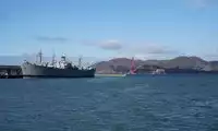 In addition to being a tourist gathering area, Fisherman's Wharf still retains its original function as a place for ships and warships to dock and resupply.