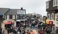 The pier, a ten-minute walk from Lombard Street, is essentially a pier area flanked by commercial streets, making it a must-see destination in San Francisco. Walking from Fisherman's Wharf toward the cruise ship, you'll see a two-story shopping street filled with food and souvenir shops. If you have time, you can wander in and browse.