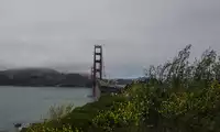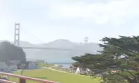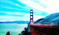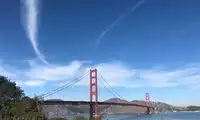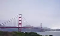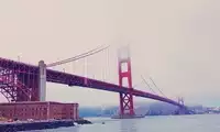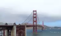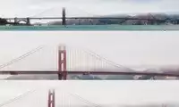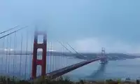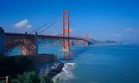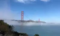 Set sail, the magnificent Golden Gate Bridge stretches across the bay. Even the thick fog can't obscure its vibrant red... San Francisco's unique geographical location results in a year-round humid, cool, and foggy climate. The perpetual fog over the Golden Gate Bridge is particularly striking, creating a clear distinction between the bridge and Fisherman's Wharf...