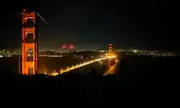 The Golden Gate Bridge is one of the world's most famous bridges, hailed as a marvel of 20th-century bridge engineering and considered a symbol of San Francisco. Construction began in 1933 and was completed in May 1937, taking four years and over 100,000 tons of steel at a cost of $35.5 million. The bridge boasts a majestic yet understated design. Its vermilion-colored bridge, resting atop the azure sea and white waves, glows brightly, resembling a giant dragon soaring through the sky, adding to the breathtaking beauty of San Francisco's night sky.