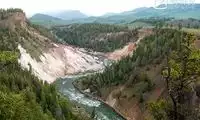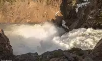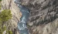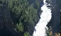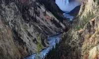 The river flowing from Yellowstone Lake flows through a roughly 38-kilometer stretch, creating a precipitous canyon commonly known as the Grand Canyon of the Yellowstone. The Yellowstone River, a mere 97 kilometers long, is known as "the only river in the United States without a dam." Here, the river suddenly surges, creating a powerful spray that creates two magnificent waterfalls that roar into the Grand Canyon.