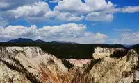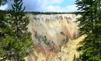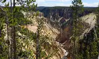 Due to long-term weathering and the nourishment of hot springs, various metallic substances in the ancient rhyolite in Yellowstone Canyon have oxidized, creating a vibrant yellowish coloration that gives Yellowstone National Park its name. Artist's Point and Inspiration Point to the north offer the best views of the canyon's grandeur. It's said there are trails leading down to the canyon floor.