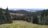 Although they are tall trees, they look like a meadow against the backdrop of the canyon.