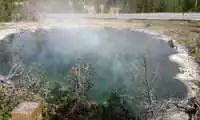 At the right end of the figure-8 curve, you'll find the Grand Canyon of the Yellowstone and its Upper and Lower Falls. The canyon's cross-section is dominated by orange and yellow, with dense fir trees dotting the mountaintops. The green waters of the waterfalls, the gushing white foam, and the azure sky create a landscape painting with no skimpy use of color. The Lower Falls is the highest waterfall in Yellowstone National Park, with a drop twice that of Niagara Falls. If you have the time, whether you walk to the falls or descend the mountain path to them, you'll experience a completely different experience than simply viewing them from afar.