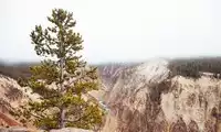 The weathered volcanic rocks in the Yellowstone Grand Canyon are also very colorful. Even on such a foggy day, the red, yellow, white and brown colors of the volcanic rocks cannot be concealed.