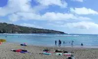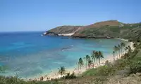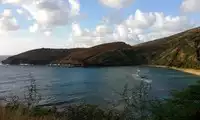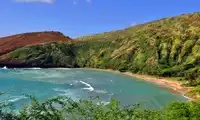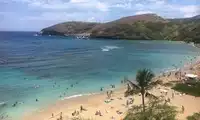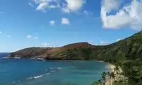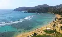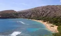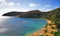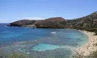 Hanauma Bay is a beach park and state underwater park. The name "Hanauma Bay" originated in China because, from a distance, it resembles a sleeping dinosaur lying on its stomach. The shallow waters, low waves, coral reefs, and tropical fish make it one of Hawaii's most ideal swimming and snorkeling spots.