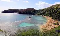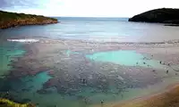 Hanauma Bay, a regional beach park and a state underwater park, is one of the most popular attractions on Oahu, Hawaii. Especially during peak summer tourist season, parking can be difficult to find before 9 a.m. Hanauma Bay, named for its resemblance to a sleeping dinosaur, is home to a vibrant array of marine life, making it one of Hawaii's most ideal swimming and snorkeling spots. The Marine Education Center is also a great place to learn about bay conservation, featuring skits and exhibits.