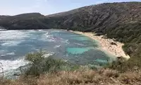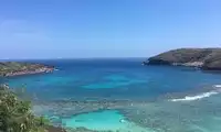 Hanauma Bay is great for taking photos from a distance, and a panoramic view is even more beautiful. There are many fish and beautiful corals when snorkeling below. Be careful not to get sunburned, as the sun is very strong.