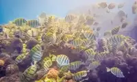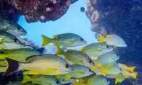 There are many coral reefs throughout the bay. When snorkeling, remember that some areas are full of fish, while others are nearly empty no matter how long you wait. If you don't see many fish, try looking in a different area.