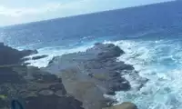 We headed to Hanauma Bay, which is only a 20-minute drive from the hotel. We were already late, so we tried our luck to see if there were any parking spots. Sure enough, there weren't any. Hanauma Bay is closed every Tuesday to protect the environment, and there's a daily limit on the number of visitors. There were no parking spots at Hanauma Bay, so we headed to a nearby viewing point, where we could see the Pacific Ocean waves. My balance is terrible, and climbing down from such a high place would have been fatal. Luckily, Mr. Xiao helped me get to the rocks safely, and I got soaked taking this photo. We had a blast here.