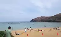 Hanauma Bay is closed on Tuesdays, so please plan your visit accordingly. Parking is limited daily, and parking is available before 9:00 AM. Before entering the beach, you'll need to watch a short video. Afterward, you can walk down on your own or take the shuttle for a few dollars. The shuttle will stamp your hand, and you can return to the same spot. There are restrooms and changing rooms on the beach, as well as cold showers. Visibility is not particularly good, and fish are rare close by; you'll need to swim at least 100 meters to see schools of fish. There are no umbrellas or lounge chairs on the beach, so please bring your own beach towel and wear sunscreen.
