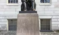 In front of Harvard University's administration building stands a statue of John Harvard, draped with an American flag and inscribed on its base are three words: "John Harvard," "Founder," and "1638." However, these three words conceal three famous lies.