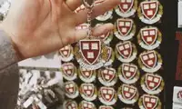 Souvenirs: Harvard-branded apparel, books, mugs, and stationery from the Harvard Coop bookstore.