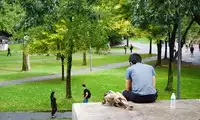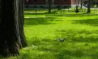 The environment of the famous university is indeed good, and you can see squirrels on the roadside trees at any time.