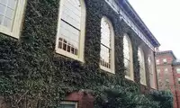 Libraries at prestigious universities are always the most prominent, but sometimes this isn't always the case. The most beautiful building on Harvard's campus is the red and white one just before entering. Its tallest bell tower chimes every hour, and its alternating gray, white, and red roof creates a variety of patterns and shapes. Monastery-style corridors run through it. From the side, the towering red exterior, inlaid with stained glass, exudes a majestic yet elegant air. The tightly closed black wooden door is somewhat heavy, and the arched glass above is divided into smaller units, each painted with a different pattern. The ornate exterior invites a closer look, despite a clear sign at the entrance stating: "Non-students are prohibited from entering." This only arouses irresistible curiosity.