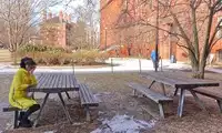 As the world's leading university, Harvard University attracts thousands of visitors each year. The campus is bustling with groups of tourists, especially children visiting during summer camp, making it feel more like a tourist attraction than a school. The school thoughtfully provides plenty of seating on the lawn for visitors to relax. Most libraries and classrooms are closed to the public. There's a market, perhaps a student-run business, selling fruits and vegetables.