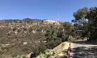 This is a residential area located halfway up a mountain, very close to the Hollywood sign. At the top, there's a small hillside with no obstructions, offering excellent views! Erji's method of finding the route was surprisingly simple: he simply set his GPS to the Hollywood sign, and Google recommended this route. What a pleasant surprise!