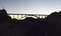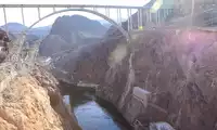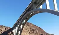 The Mike O'Callaghan-Pat Tillman Memorial Bridge at the dam spans the Colorado River, connecting Arizona and Nevada.