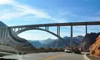 To get a closer look at Hoover Dam, you need to walk across the towering Mike O' Callaghan-Pat Tillman Memorial Bridge, an arch bridge spanning the Colorado River, connecting Arizona and Nevada.