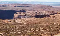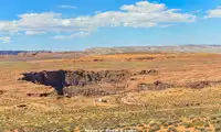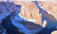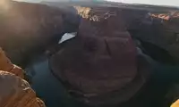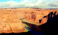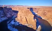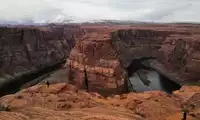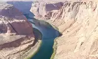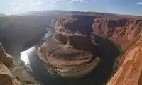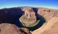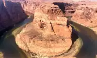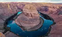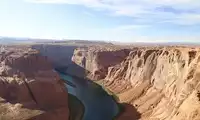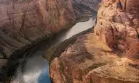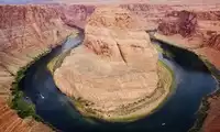 Horseshoe Bend is a horseshoe-shaped bend in the Colorado River near Page, Arizona, USA. It lies downstream from Glen Canyon Dam and Lake Powell, 6 kilometers from Page. A 1.2-kilometer hike from U.S. Highway 89 leads to Horseshoe Bend, where the best views are from atop a steep cliff. The cliffs are 4,200 feet above sea level, while the Colorado River is 3,200 feet above sea level, a drop of 1,000 feet.