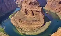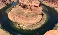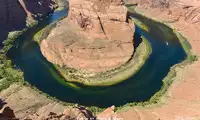 Horseshoe Bend is a U-shaped section of the Colorado River in Arizona, part of the Glen Canyon. It's named "Horseshoe Bend" because the rocks surrounding the bend resemble a horseshoe. Some also call it the Colorado River's Great Bend.