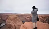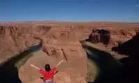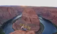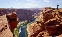 Although the size of Horseshoe Bend isn't immediately apparent from the picture, it's actually part of the Grand Canyon, with the Colorado River running through it. As part of the Grand Canyon, it's quite deep, reaching over 100 meters. The observation deck here, with the exception of a small section with guardrails in the center, is made up of pristine rock edges. Standing on the edge and looking down can be quite dizzying. Those with a fear of heights should be careful standing on the edge; you're sure to get weak legs and feel terrified. Horseshoe Bend is free to enter, and it's quite popular. Facing the west, you can time your visit to see the sunset. While smaller than the Grand Canyon, Horseshoe Bend is still over 100 meters deep, with vertical cliffs, making it quite a sight.