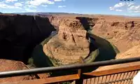 Horseshoe Bend is less than a ten-minute drive from Lower Antelope Canyon, making it a worthwhile stop after exploring the canyon. There's no entrance fee, but parking is $10 per vehicle per visit. There are no other services. The hike up to the bend takes about 15 minutes. The scenery is unique and well worth a visit. Photography enthusiasts will definitely appreciate it. The cliffs are very steep, so be careful, especially if you're traveling with children.