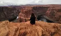 This jutting rock is the perfect spot for panoramic views of Horseshoe Bend. I thought my legs would give out if I stood there, but I was so brave I almost couldn't believe it and actually made it to the edge! Haha, it feels like every trip is a chance to push my limits. From the trembling steps of Angkor Wat in Cambodia, to the trepidation of climbing the pagoda in Myanmar, to now standing on the edge of a cliff, constantly challenging what I thought was impossible is part of the charm of travel.