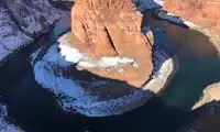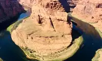 The Colorado River turns 180 degrees here, forming a horseshoe-shaped bend, which looks like a perfect omega when viewed from the air.