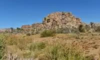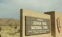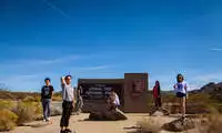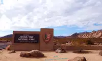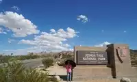 Actually, there's not much to see in this national park, just desert and some strange trees. However, it attracts many rock climbers every year. It didn't really matter to us, but since we were there, we decided to take a look. Or maybe just take a stroll. There must be a reason for the "national park" designation, though I haven't really researched it. Since we were here, we couldn't leave without making some notes, so we drove to another exit and looked for the entrance stone marker found in every national park.