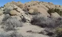 Desert scenery, boulders and Joshua trees, a sense of vastness