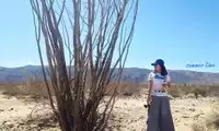 The park is truly breathtaking once you enter it. Looking around, all you see are two or three other tourists, desert and Joshua trees. Just drive along the established roads and you'll see several viewpoints marked on the map, which you can use to track your progress through the park. My mom and I only hiked part of the way there. We parked by the roadside, and inside was a building ruin. The hike took nearly an hour, and since there's no concrete road leading to the actual desert, we almost lost our way back. But we also got to see so many small sights, like tiny lizards hiding under rocks and incredibly colorful flowers blooming in the desert. We marveled at their tenacity (actually, there's not much else to do here besides soaking up the atmosphere and looking at the trees. Wherever there's a large rock, it's given a name and designated as a vista point). Although we didn't experience the warm California sunshine on this trip to California—the temperature was quite low—it still made our trip to the desert a comfortable one.