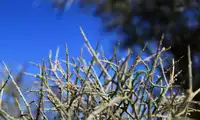 Besides the Joshua tree, which stands as a "star" in the park, there is also this "strange uncle tree" that grows in the shape of an inverted triangle... From a distance, its shape looks very unique, so it attracted me to stop and take a photo; but when I got closer, I could see clearly that the branches were densely covered with thick thorns like large needles used to make shoe soles!