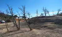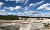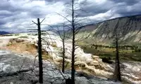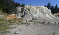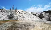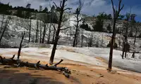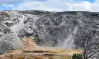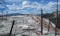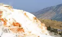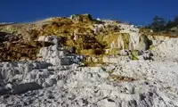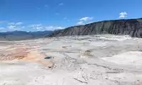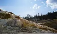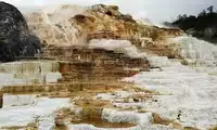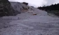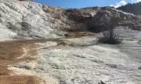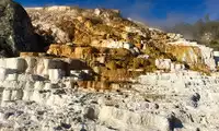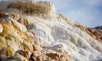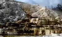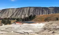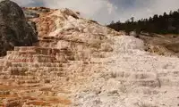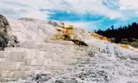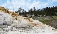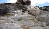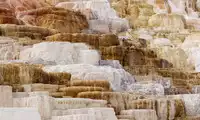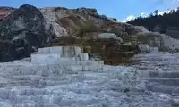 Located northwest of Yellowstone National Park, this is the world's largest known carbonate hot spring. The Yellowstone National Park Service headquarters are located here, along with the Albright Visitor Center, which is open year-round. The landscape is dominated by limestone steps, also known as the thermal terraces, which can be divided into the Upper Terraces and the Lower Terraces. Mammoth Hot Springs originally had multiple hot springs cascading down the hillside, breeding a large number of bacteria and creating a colorful staircase. However, after a tectonic shift in 2002, most of the hot springs ceased activity, resulting in the death of numerous microorganisms and the loss of color at Mammoth Hot Springs. The dead bacteria also turned into an off-white powder, which remains on the dried-out steps.