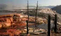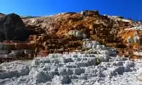 Mammoth is a carbonate hot spring with lower and upper terraces. After a tectonic shift in 2002, the terraces ceased to function, killing off a significant number of microorganisms and causing the color to fade. Now, all that remains are the orange and off-white steps. The lower terrace is quite beautiful, with a wooden boardwalk. The upper terrace is quite ordinary and can be easily accessed by car; there's no need to leave the car. If you're short on time, skip the upper terrace.