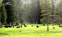 There are whole forests, grasslands, wildflowers, and many animals. Elk, brown bears, bison, rabbits. There are beautiful scenery everywhere.