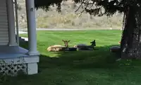 The Mammoth Springs parking lot offers a close-up view of Mammoth Springs, perfect for taking photos. However, the climb to the summit takes about an hour. You can drive southwest for a few miles to the summit and enjoy the panoramic views. We also spotted a group of mule deer resting in the shade at the Mammoth Springs Visitor Center: one male and several females. Their distinctive white buttocks...