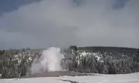 It's been steaming, but not erupting. It's been almost 10 minutes, and it's only erupted twice. The kid is getting impatient and has gone off to play in the snow.