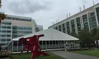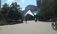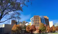 I saw a wave of bizarre and avant-garde architecture, the work of world-renowned architect Gehry. Someone commented that the buildings looked like "a bunch of drunken robots having fun." There's a staircase in front of the building, and by noon, students would sit there reading, chatting, and eating. Honestly, the sun was already blazing, and we were all about to leave, but they seemed unfazed and still sat there.