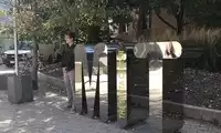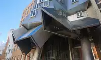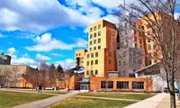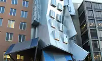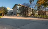 Another of my favorite buildings on the MIT campus is this incredibly unique-looking building. Actually, it's just a dorm for MIT undergraduates. It's got a very tech-inspired feel, a bit like the polymer pore structure Beidou studied. Inside, there's a small theater, a nighttime cafe, and a restaurant. Each dorm room has nine windows that switch on and off. The tint of the windows changes depending on the angle of the sun, providing heat to the building and saving energy. Since it's a student dormitory, it's not open to the public. If you're brave enough, you might want to wait for students returning to their dorms at the door and ask them to show you inside.