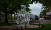 There is a work by Spanish sculptor Jaume Plensa, which was donated by an anonymous alumnus in 2010 to commemorate the 150th anniversary of the founding of MIT.