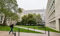 MIT is also a world-renowned university, ranked first in engineering. It's very large, with several connected buildings, and you can see some labs and classrooms. As expected, the architecture of the Institute of Technology isn't particularly artistic. The school is very close to the Charles River, and walking along the river, you can see downtown Boston on the other side.